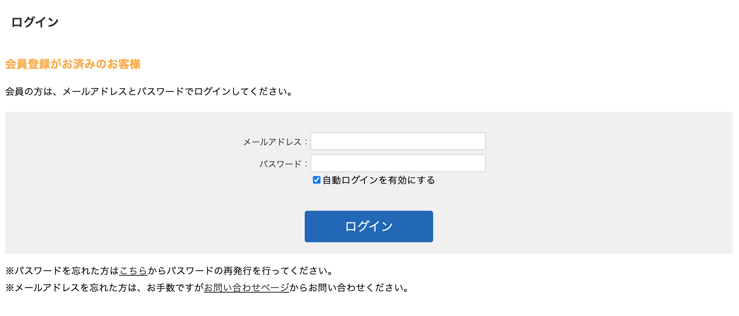 - ご登録のメールアドレスとパスワードでログインしてください。