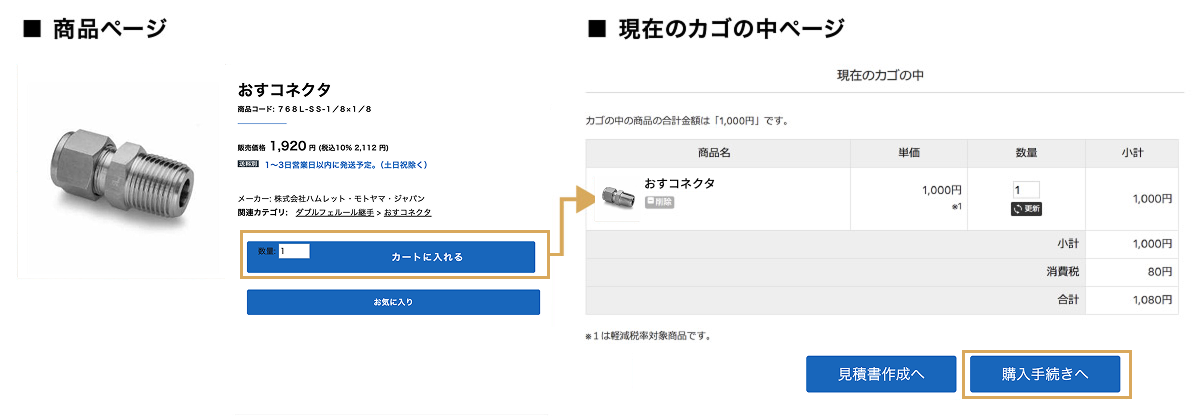 - 数量を入力し「カゴに入れる」ボタンをクリックします。