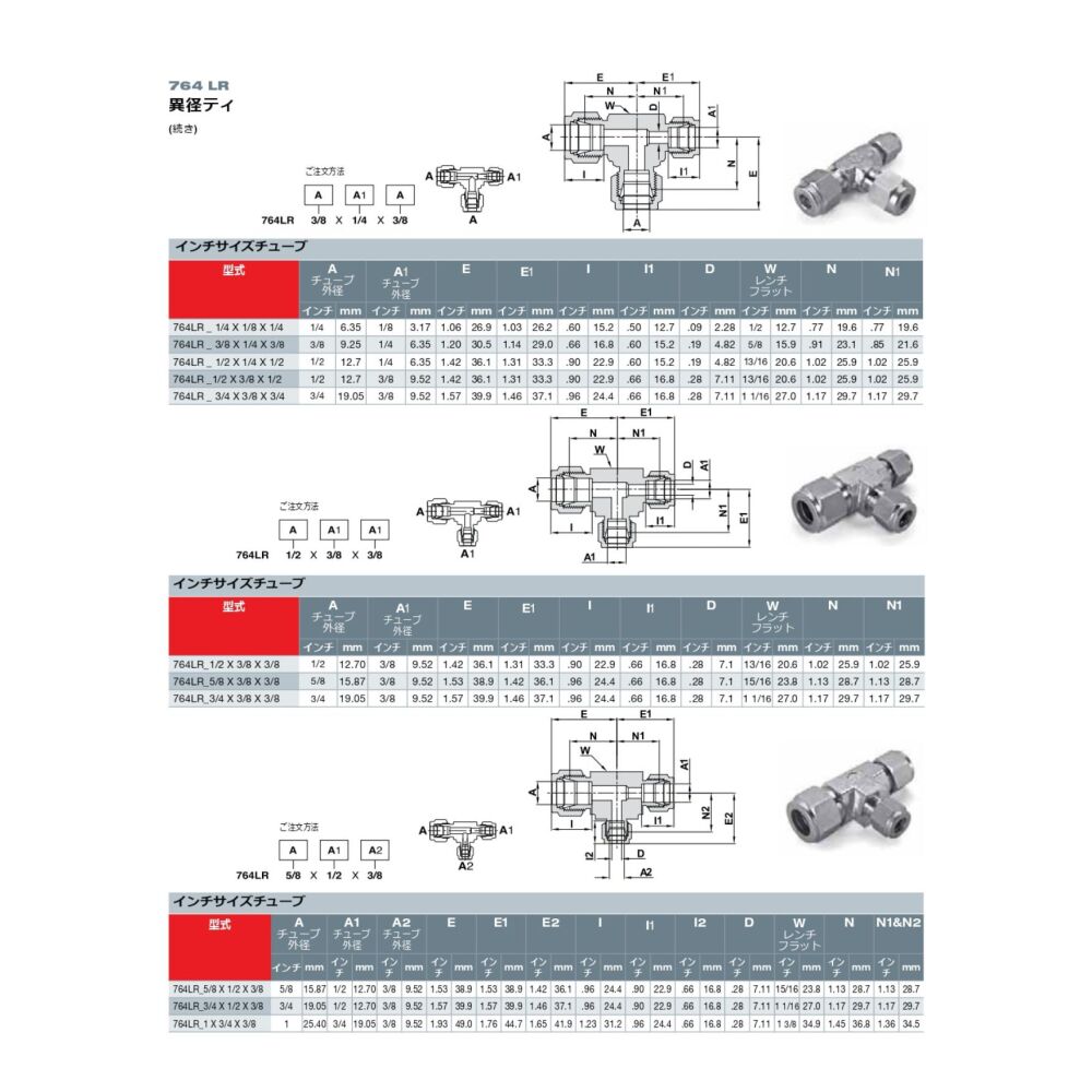 異径ティ 764LR‐SS‐1/4×1/4×1/8