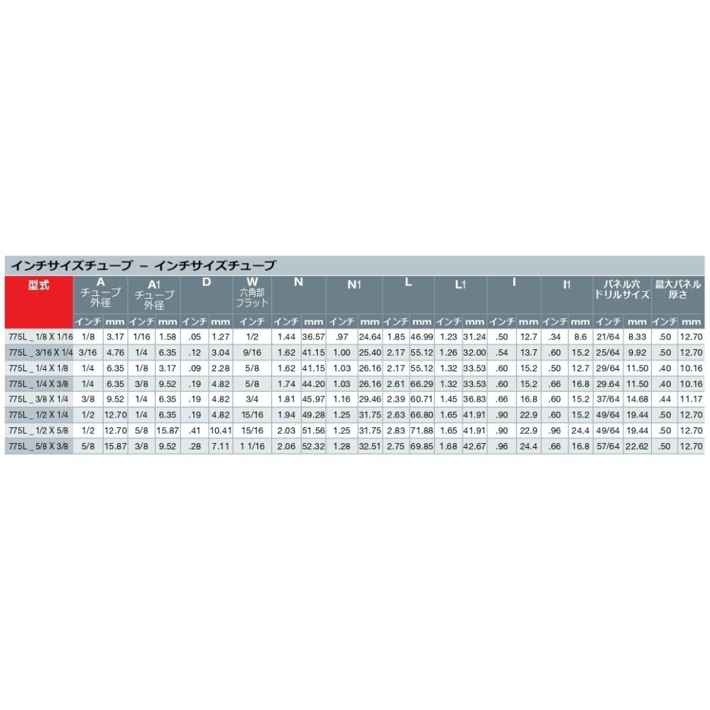 バルクヘッド異径ユニオン 775L-SS-1/4×1/8