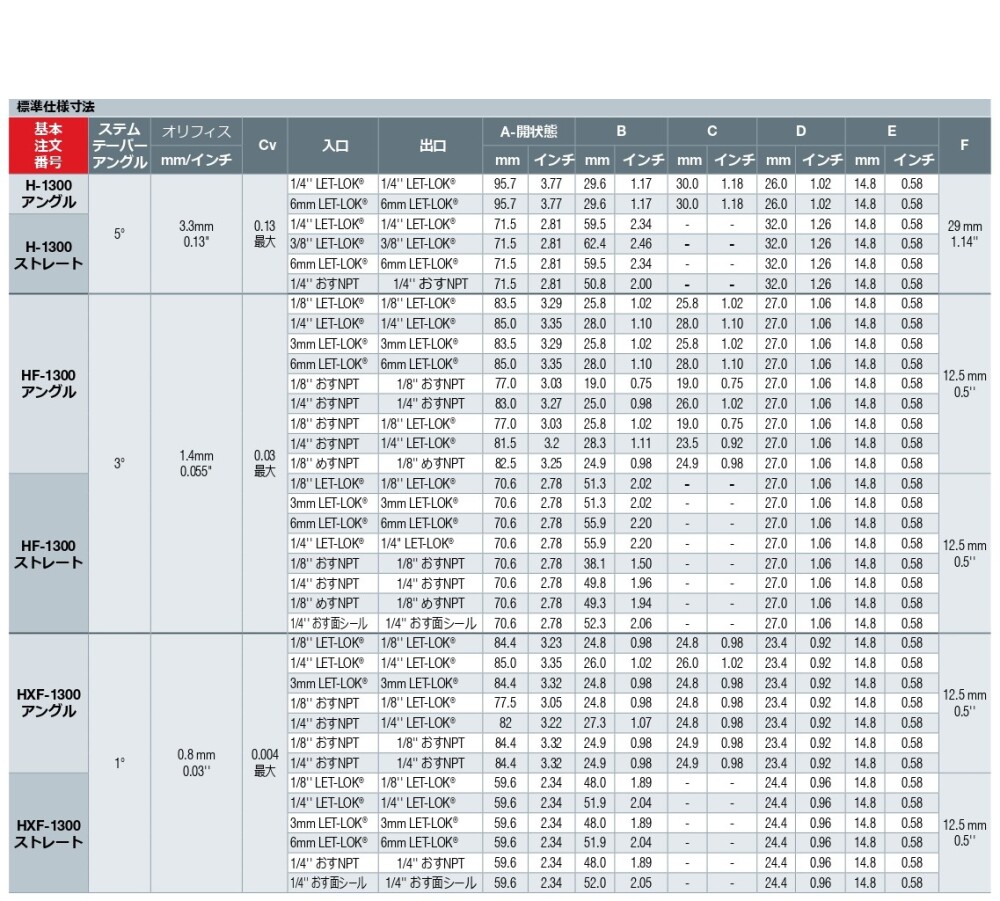 メータリングバルブ HF-13-00-SS-L-1/8-A
