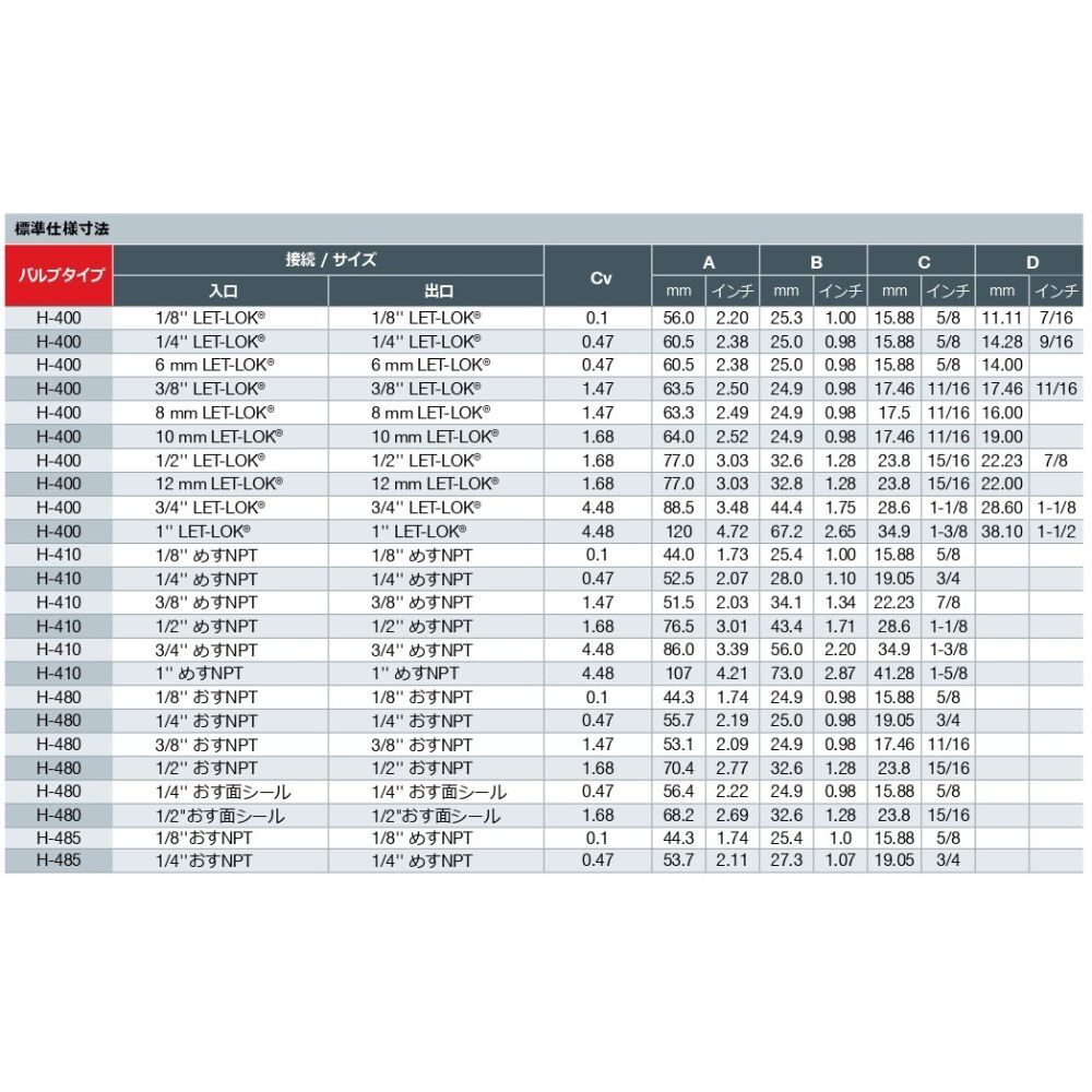 チェックバルブ H-400-SS-L-3/8-1-PSI